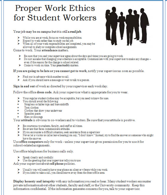 - Be sure that you and your supervisor agree about the days and times you are going to work.