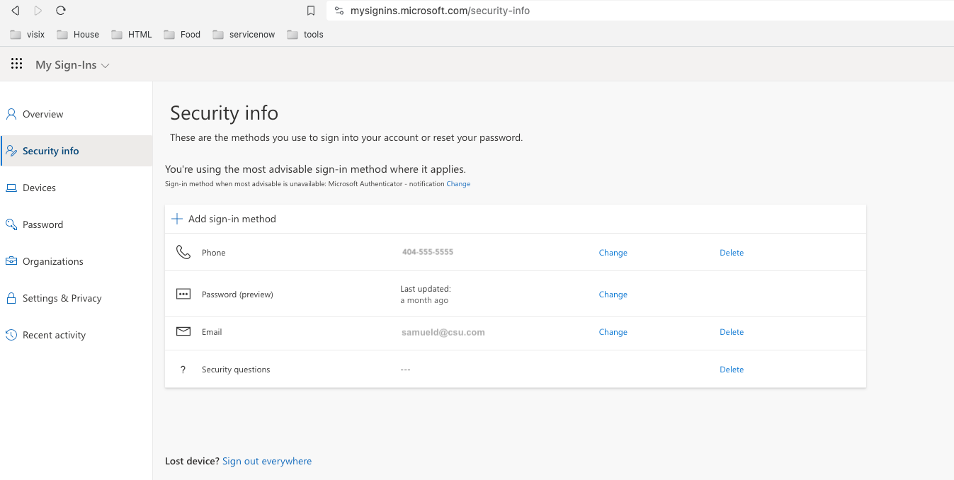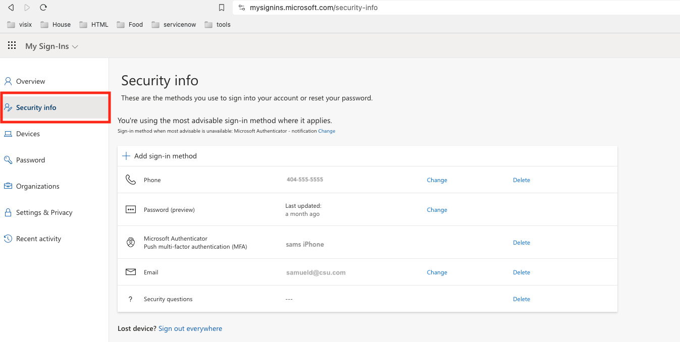 1. Go to https://mysignins.microsoft.com/security-info